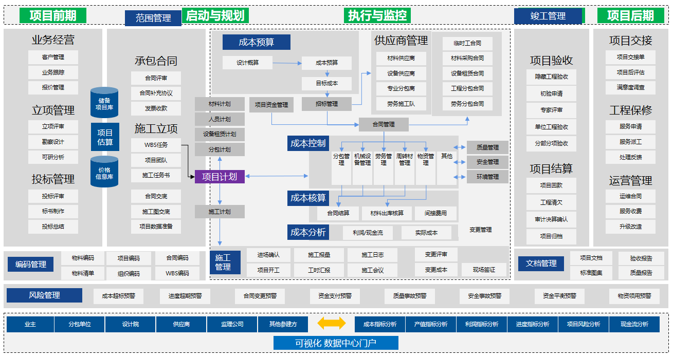 ? ? ? ?工程行業(yè)的成本構(gòu)成復(fù)雜,涵蓋各種材料支出,人工,設(shè)備,措施費管理費等。 在手工條件下,往往無法及時統(tǒng)計及動態(tài)分析項目成本,無法及時發(fā)現(xiàn)問題,無法及時快速調(diào)整施工策略。甚至項目完工后都無法核算出真實準(zhǔn)確的項目成本,項目賺不賺錢無從得知。成本管理無法實現(xiàn)事前預(yù)測,事中監(jiān)控,事后分析。